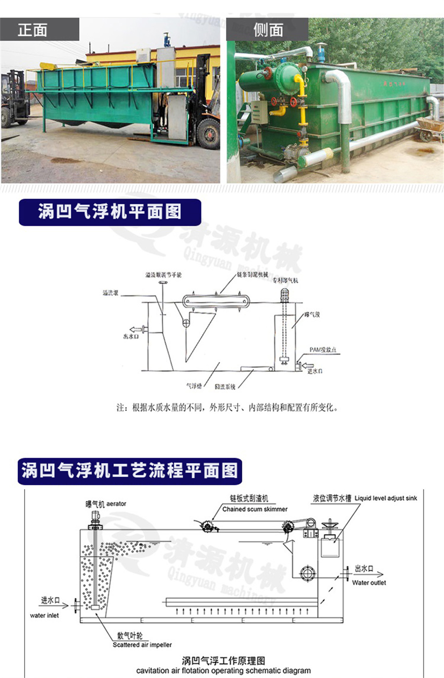 此外,我公司不僅生產(chǎn)渦凹?xì)飧C(jī)、還生產(chǎn)豎流式溶氣氣浮機(jī)、地埋式污水處理設(shè)備、污泥壓濾機(jī)、固液分離設(shè)備、造紙設(shè)備等其他設(shè)備。