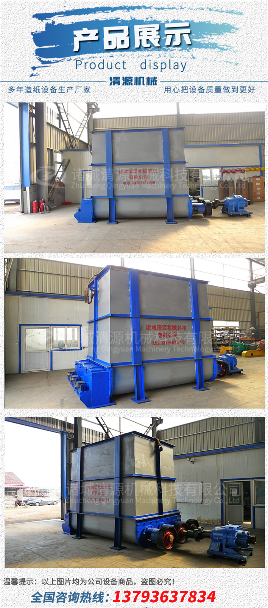 此外,我公司還生產(chǎn)高濃度節(jié)能磨漿機(jī)、地埋式污水處理設(shè)備、氣浮機(jī)、污泥壓濾機(jī)、固液分離設(shè)備等其他設(shè)備。
