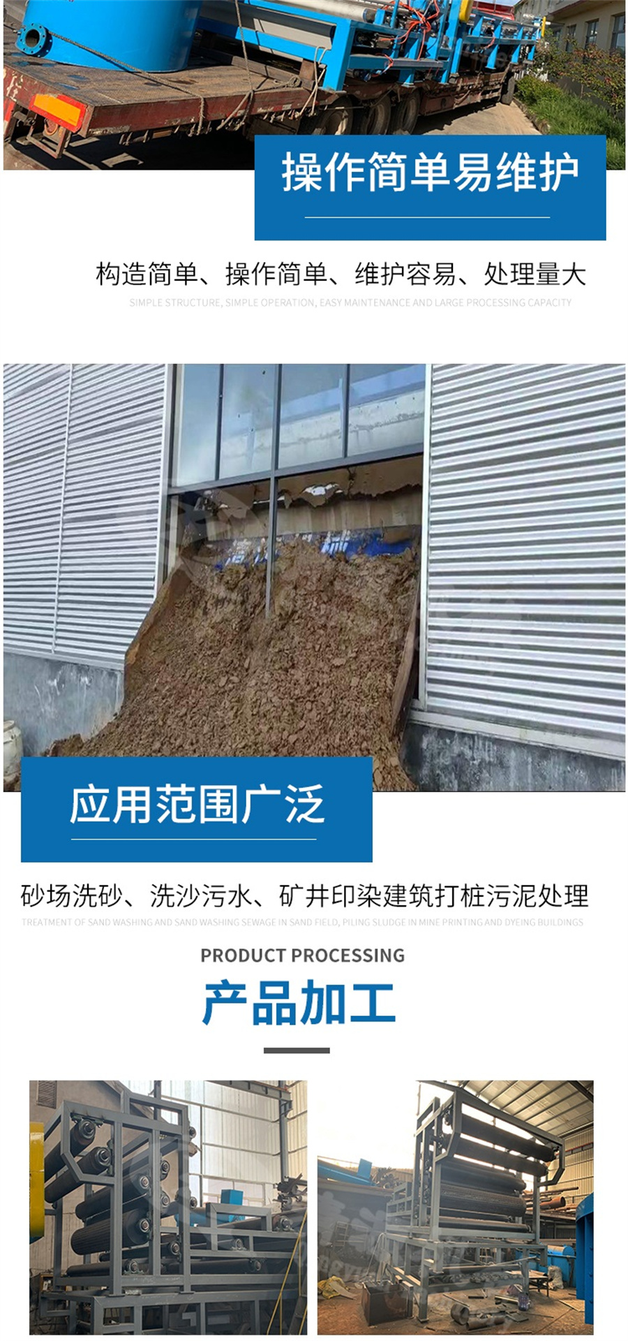 三網(wǎng)帶式壓濾機廣泛應用于城市生活污水、紡織印染、電鍍、造紙、皮革、釀造、食品加工、洗煤、石油化工、化學、冶金、制藥、陶瓷等行業(yè)的污泥脫水處理,也適用于工業(yè)生產(chǎn)的固分離或液體浸出工序。